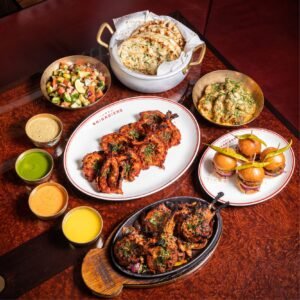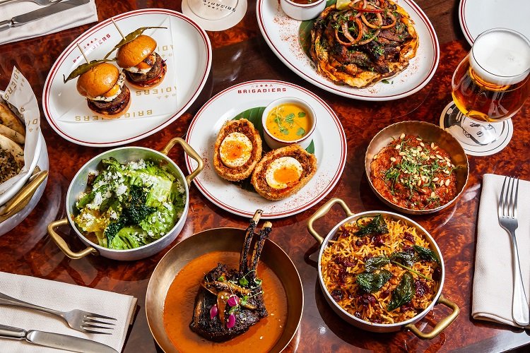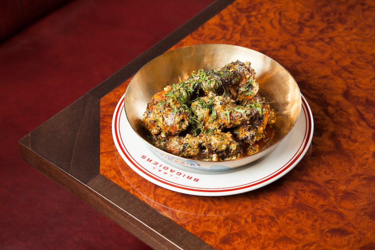 Brigadiers, located in Bloomberg Arcade near Bank, is an Indian barbecue restaurant and sports bar brought to you by the team behind Michelin-starred Gymkhana and Trishna. The venue boasts a variety of spaces, including two dining rooms, two bars, three private rooms, and a pool room featuring a self-serve beer and cocktail machine, all with TVs for sports viewing. The menu is centered around shareable grills and mains, with standout dishes like Barbecue Butter Chicken Wings, Masala Chicken Skins, and Tandoori Lamb Chops. On weekends, the restaurant offers a special Saturday Sports Menu. Brigadiers is the ideal setting for everything from casual get-togethers with friends to corporate private dining, blending a relaxed yet premium atmosphere.