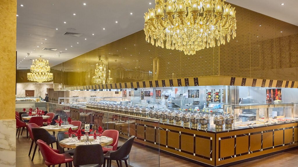 Royal Nawaab Ilford blends centuries-old recipes with modern elegance, offering a luxurious banquet dining experience featuring authentic Indian and Pakistani cuisine. The restaurant specializes in all-you-can-eat buffet service with over 100 dishes including slow-cooked curries, freshly baked naan, tender lamb chops, aromatic biryani, and fresh salads. Every dish is prepared using 100% halal-certified ingredients, reflecting the restaurant's commitment to halal principles. The ambiance is sophisticated and sophisticated with lavish décor including multi-tiered chandeliers, golden water features, and elegant furnishings. The spacious dining area accommodates families and large gatherings, creating the perfect setting for memorable meals, special celebrations, and family outings. A comprehensive dessert bar features sticky toffee pudding, apple crumble, kheer, gulab jamun, and gelato.